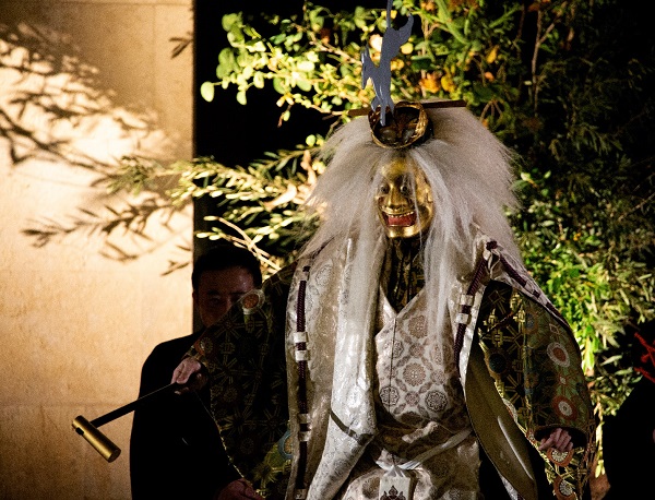 The Hosho School, which hosted the event, is a Japanese Noh school with a history that dates back about 650 years. Hosho school is known for its profound artistic style and melodic chanting and, because it was loved by successive shoguns, the school has many artifacts in its collection, including Noh masks and costumes used in Noh plays. Some of these masterpieces have been designated as Japan’s national treasures. In the Noh play “Ko-Kaji,” performed in Abu Dhabi and Dubai, a gold-covered Noh mask, “Kotobide,” which was made about three hundred years ago, was used, and other special costumes made of woven platinum fascinated the audience.