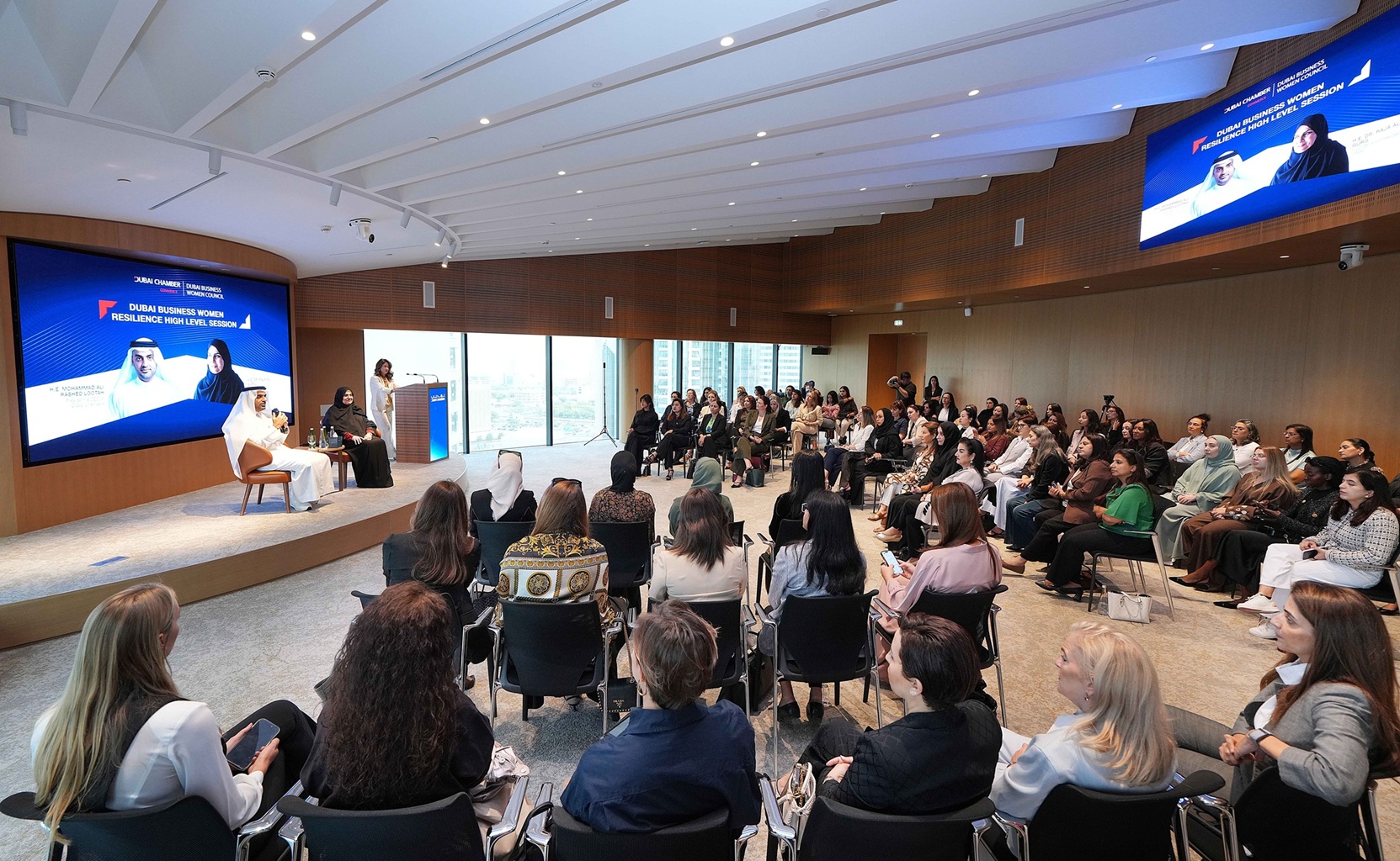 The event included an interactive dialogue with H.E. Dr. Raja Al Gurg, Founder and President of DBWC, and H.E. Mohammad Ali Rashed Lootah, President and CEO of Dubai Chambers. The session created a valuable platform for direct exchange on current challenges, key priorities, and opportunities to strengthen support for businesswomen across Dubai’s private sector amid ongoing regional developments.