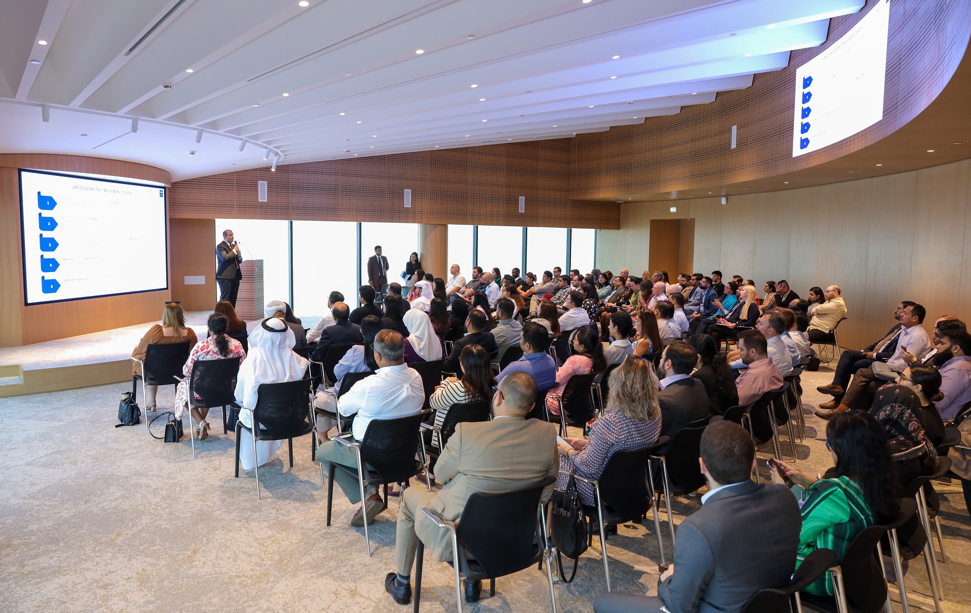 The first workshop focused on corporate tax law and was held in cooperation with MMJS Consulting. The sessions covered key aspects of the UAE’s corporate tax system including registration requirements, free zone rules, and key tax exemptions.