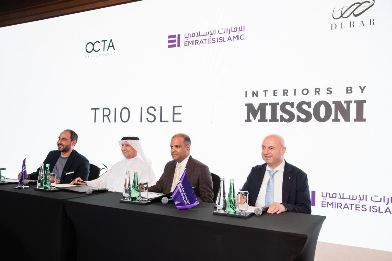 Vivek Shah, Head of Corporate Banking, Emirates Islamic, said: “Emirates Islamic is proud to announce our new partnership with DURAR OCTA to provide escrow account services for the upcoming Trio Isle Interiors by Missoni development, a project that will enhance investor confidence and expand the real estate market in Ras Al Khaimah. Emirates Islamic will continue in its path of collaboration to deliver innovative products and enhance customer experience, aligning with our vision to be the most innovative Shariah-compliant bank for our customers, people, and communities.”
