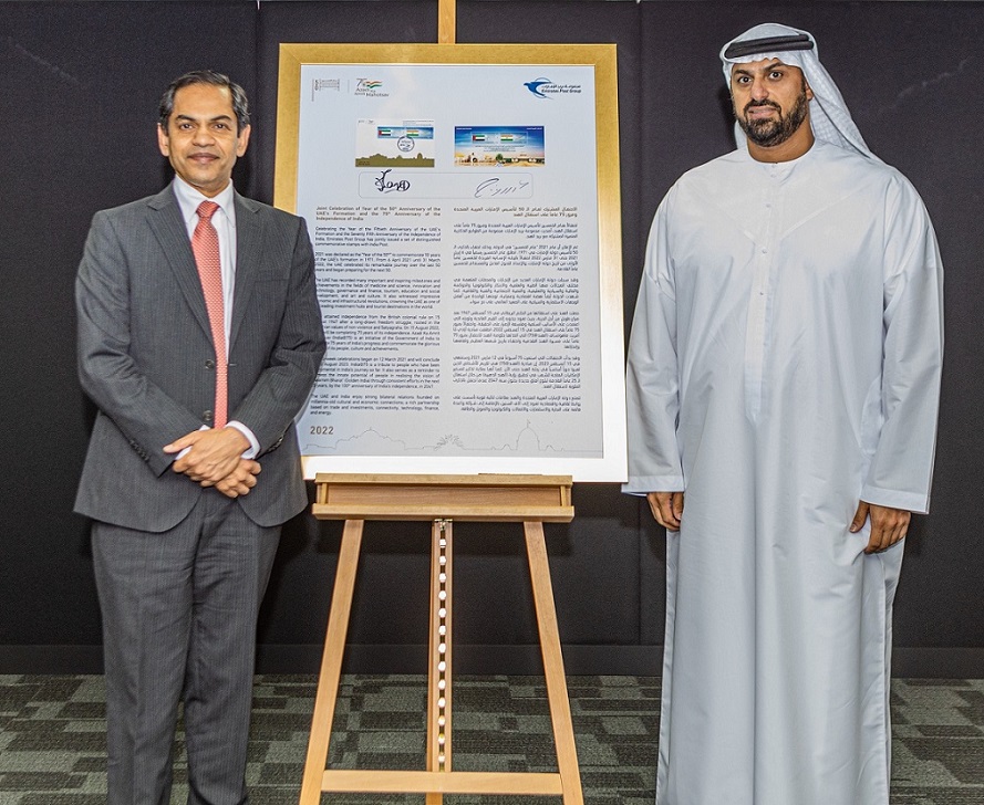 Commenting on the occasion, Abdulla M. Alashram, Group CEO of Emirates Post Group, said, “This joint commemorative stamp is aimed at promoting economic, commercial, cultural, and historical relations between the two countries, highlighting the half-century of strategic partnership that has flourished since the foundation of the UAE. This collaboration also celebrates 75 years of India’s independence. This issuance, in a mutual effort with our partners at India Post, constitutes a key addition to our commemorative stamps. With this initiative, we celebrate fifty years of achievements, as well as our contribution to UAE’s economic and social development. It also sheds light on UAE’s efforts and preparations for a new developmental journey for the coming 50 years, as per the ambitions of our wise leadership.”