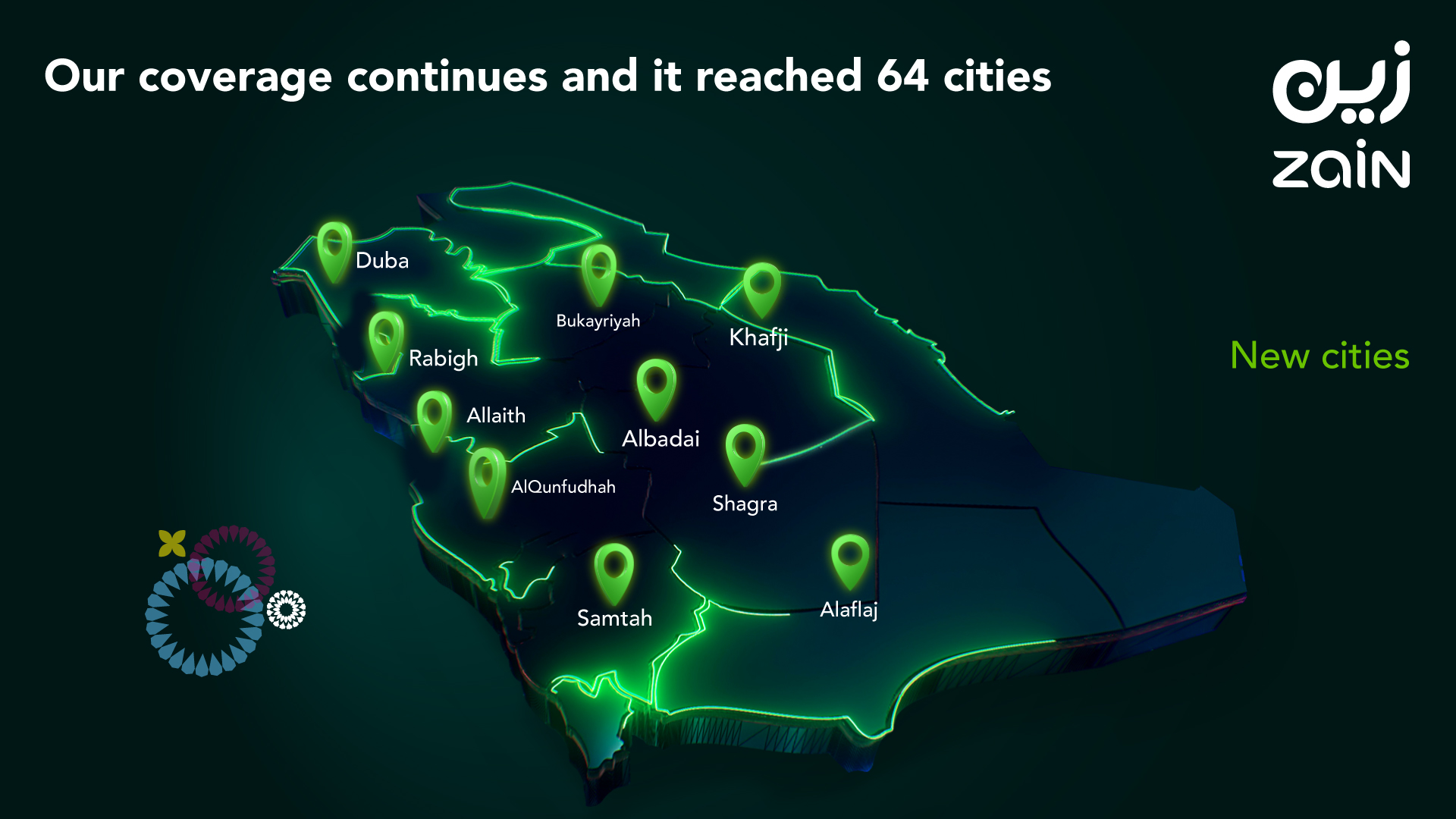 After launching the first zero-emission 5G network worldwide, Zain KSA announced the expansion of its 5G services to cover ten additional cities, including Al-Aflaj, Al-Lith, Al Qunfudhah, Al Badayea, Samtah, Shaqra, Al Khobar, Duba, Al Bukayriyah, and Rabigh. These cities now enjoy high-speed 5G digital services.