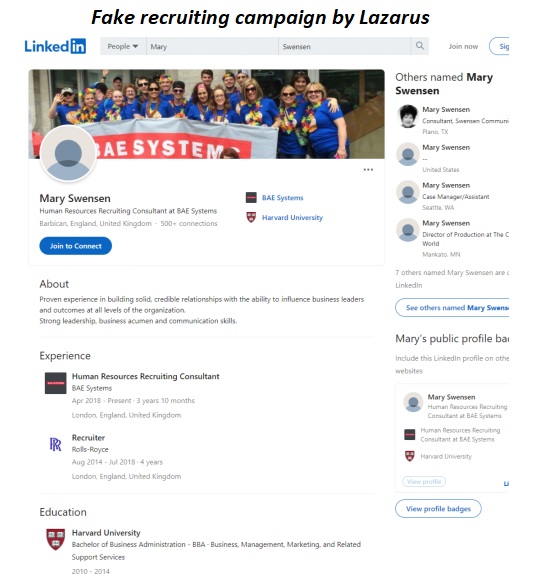 Fake recruiting campaign by Lazarus