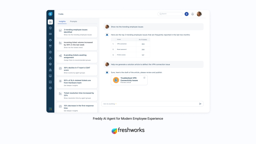 Freddy AI Agent enables a more productive and enjoyable employee experience