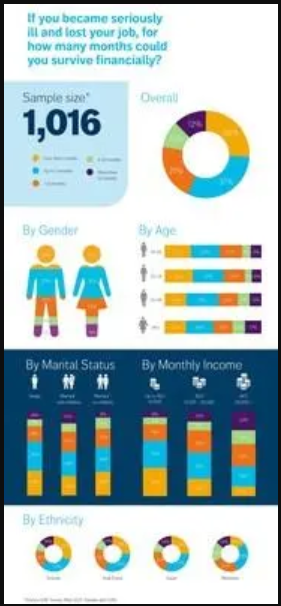 Single people were more confident that they could survive financially for three months compared with either married employees, or employees married with kids. Though more confident than other groups, since a full 66% of single people believed that they could not survive for three months financially if they fell ill and lost their jobs shows “the high level of financial unpreparedness even amongst single people with few dependents,” says Shilcock.