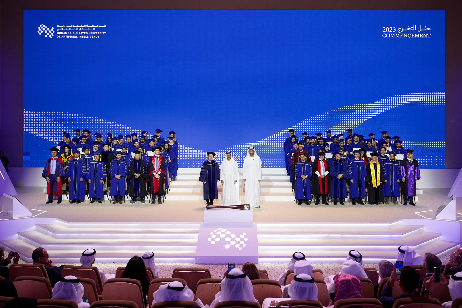 Hosted at the Abu Dhabi Energy Center, the event was attended by His Excellency Khalifa bin Mohammed bin Khalid Al Nahyan, UAE Ambassador to Jordan; His Excellency Dr. Sultan bin Ahmed Al Jaber, Minister of Industry and Advanced Technology, President-Designate of COP28 UAE and Chairman of MBZUAI’s Board of Trustees; and Professor Eric Xing, MBZUAI President and University Professor, in addition to members of the Board of Trustees and university faculty.