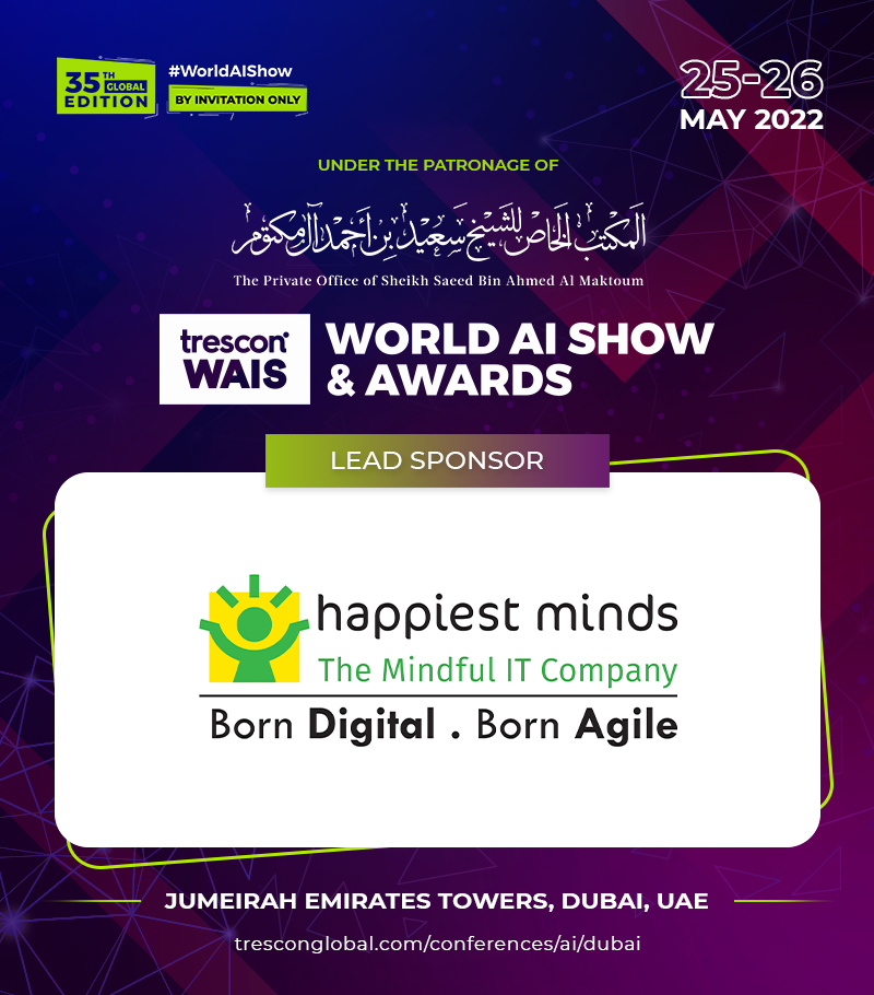 “We are happy to onboard Happiest Minds Technologies as Lead Sponsor at World AI Show & Awards. I am sure their participation will help our attendees set pace with an integrated set of disruptive technologies,” stated Mithun Shetty, CEO, Trescon.