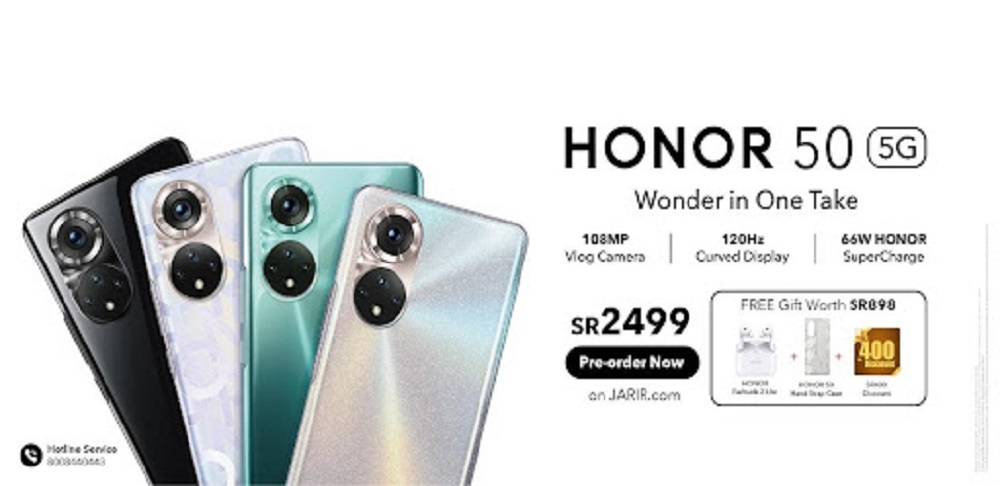 Consumers can pre-order the latest Vlog smartphone HONOR 50 starting from October 24th to 29th via JARIR, STC, Noon, Haddad. and get exclusive gifts worth up to SR 898 from HONOR. This includes HONOR Earbuds 2 Lite, Hand strap case and SR 400 Discount. HONOR 50 will officially go for sale on October 30th.