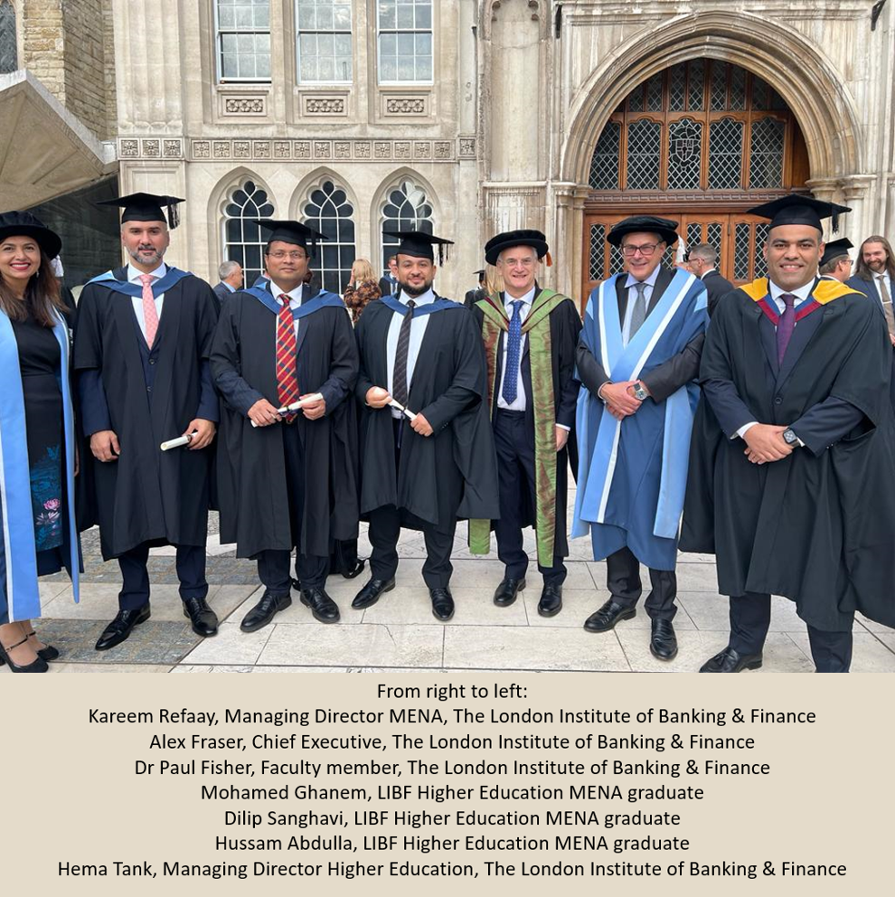 The London Institute of Banking & Finance, England’s oldest institute of banking with over 140 years, celebrated its annual graduation today. The graduation ceremony, held at London’s historic Guildhall – the hub of London City life since the 1400s and still the administrative centre of Government in the City of London today – included commemoration of ten students from MENA.