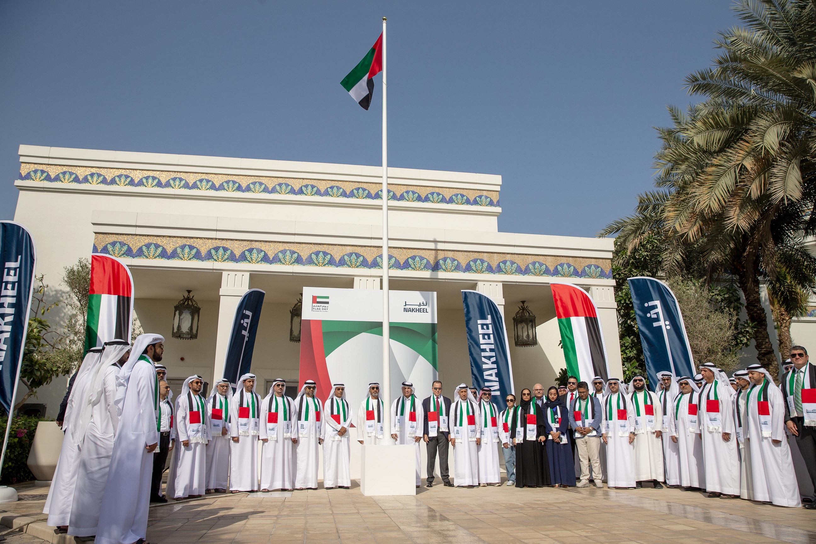 Nakheel, the world-leading master developer, today joined the Nation to celebrate the 11th UAE Flag Day by holding a flag-hoisting ceremony at the company’s Dubai headquarters at 10:00 AM.