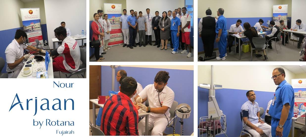 Representatives from Thumbay Hospital Fujairah assisted us in coming to the property fully equipped to give our colleagues an overall check-up. Preparations started early in the morning with our Learning and Development and HR teams helping the hospital reps set up and while also assisting in registering each of our colleagues to ensure smooth running throughout the day.