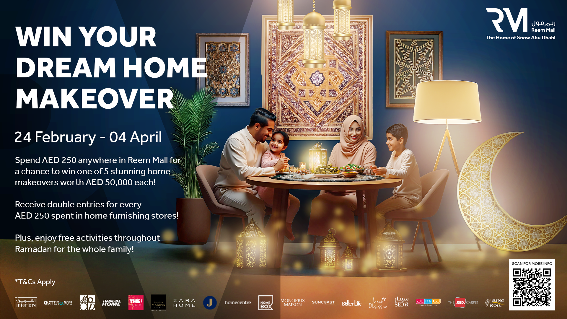 For double the chance of winning shop at Reem Mall’s extensive selection of home furnishing brands and receive 2 entries per AED 250 spend. Reem Mall is home to Abu Dhabi’s most extensive selection of home and interior brands, making it the perfect destination for a Ramadan-inspired refresh. Shoppers can explore leading names such as Homecentre, THE One, Marina Home, Suncoast, Interiors, Chattels & More, Mood, Danube Home, Zara Home, Jashanmal, Monoprix Maison, Better Life, Almila and many more – ensuring that every design vision, from classic elegance to contemporary chic, is within reach.