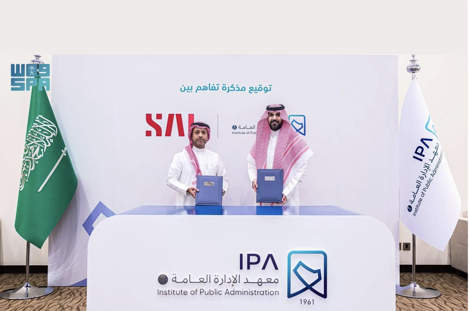 The agreement was formally signed by Mr. Saleh Al-Dini, Chief Shared Services Officer at SAL, and Mr. Abdulaziz Al-Yousef, Chief Executive Officer of the Institute of Public Administration, during a signing ceremony convened with senior leadership from both institutions.