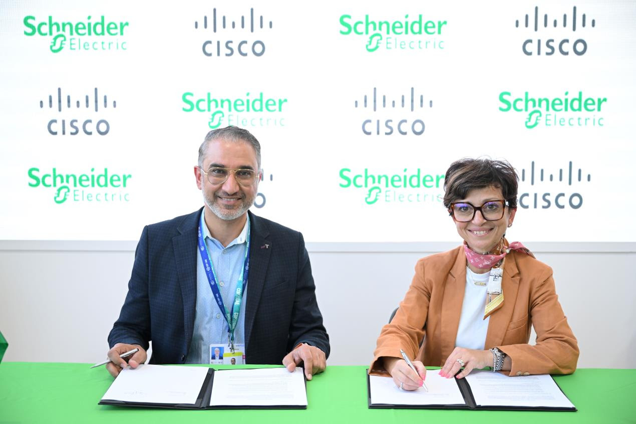 Dubai UAE– Schneider Electric, the leader in the digital transformation of energy management and automation, and Cisco, the worldwide leader in technology that powers the internet, announced a Memorandum of Understanding (MoU) to deliver innovative business solutions for customers across Europe, the Middle East and Africa (EMEA). The MoU targets four primary areas: energy infrastructure, smart buildings, data centers, and industry solutions.
