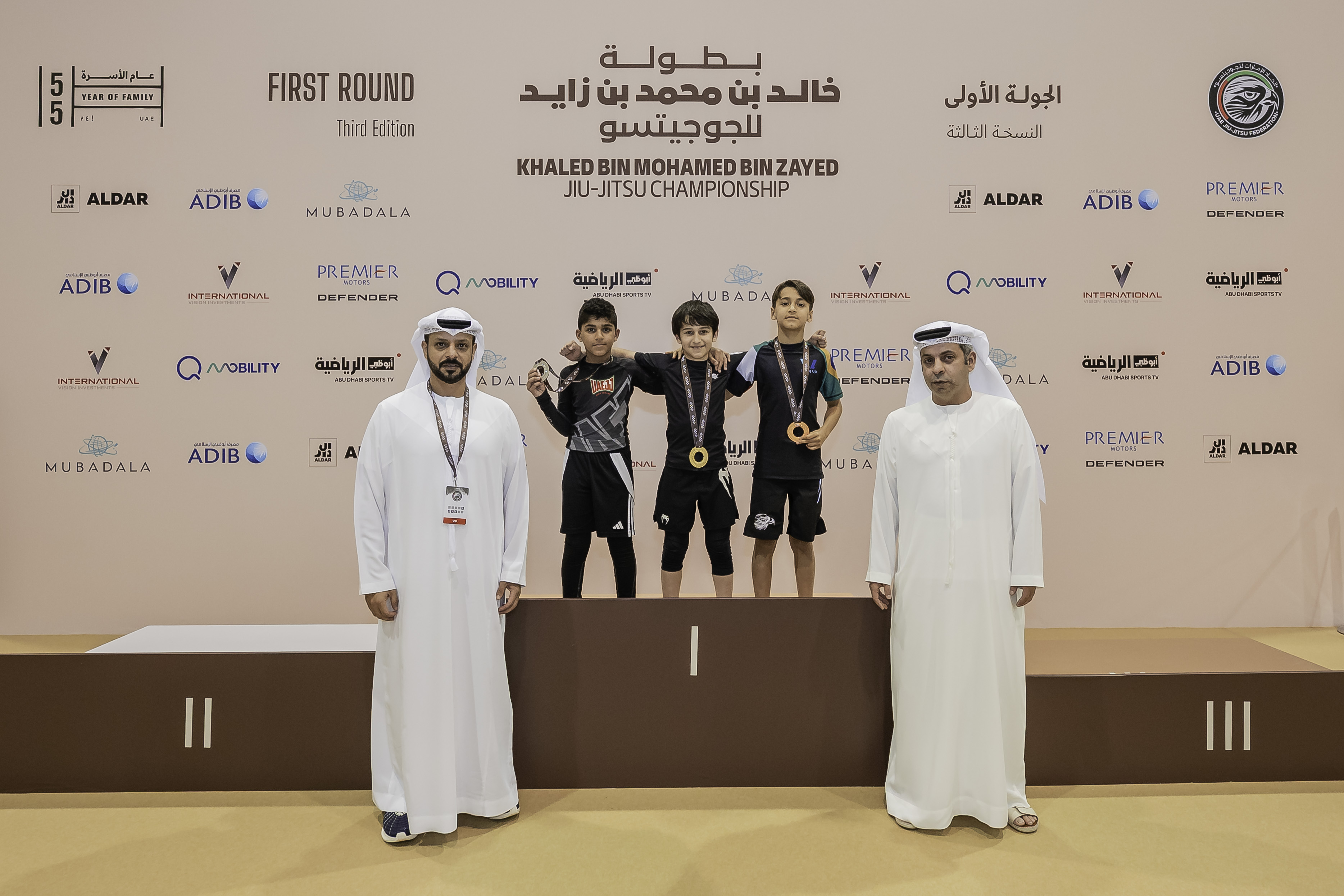 The opening day was attended by a number of officials and dignitaries, who also took part in the medal ceremonies, including H.E. Mohamed Salem Al Dhaheri, Vice Chairman of the UAE Jiu-Jitsu Federation; H.E. Yousef Abdullah Al Batran, Mohamed Hussain Al Marzooqi, and Humaid Mohammed Al Ketbi, Board Members of the Federation; Hamad Alghafli, Senior Vice President, Parking Operations at Q Mobility; Abdullah Sajwani, Director of the Licensing Department at the Ministry of Sports; Mubarak Saleh Al Menhali, Director of the Technical Department at the Federation; and Abdullah Salem Al Zaabi, Director of Marketing and Corporate Communications at the Federation; Nasser Alabdool, Dubai Regional Manager at Abu Dhabi Islamic Bank; and Fahad Almarzooqi, Deira Branch Manager at Abu Dhabi Islamic Bank.