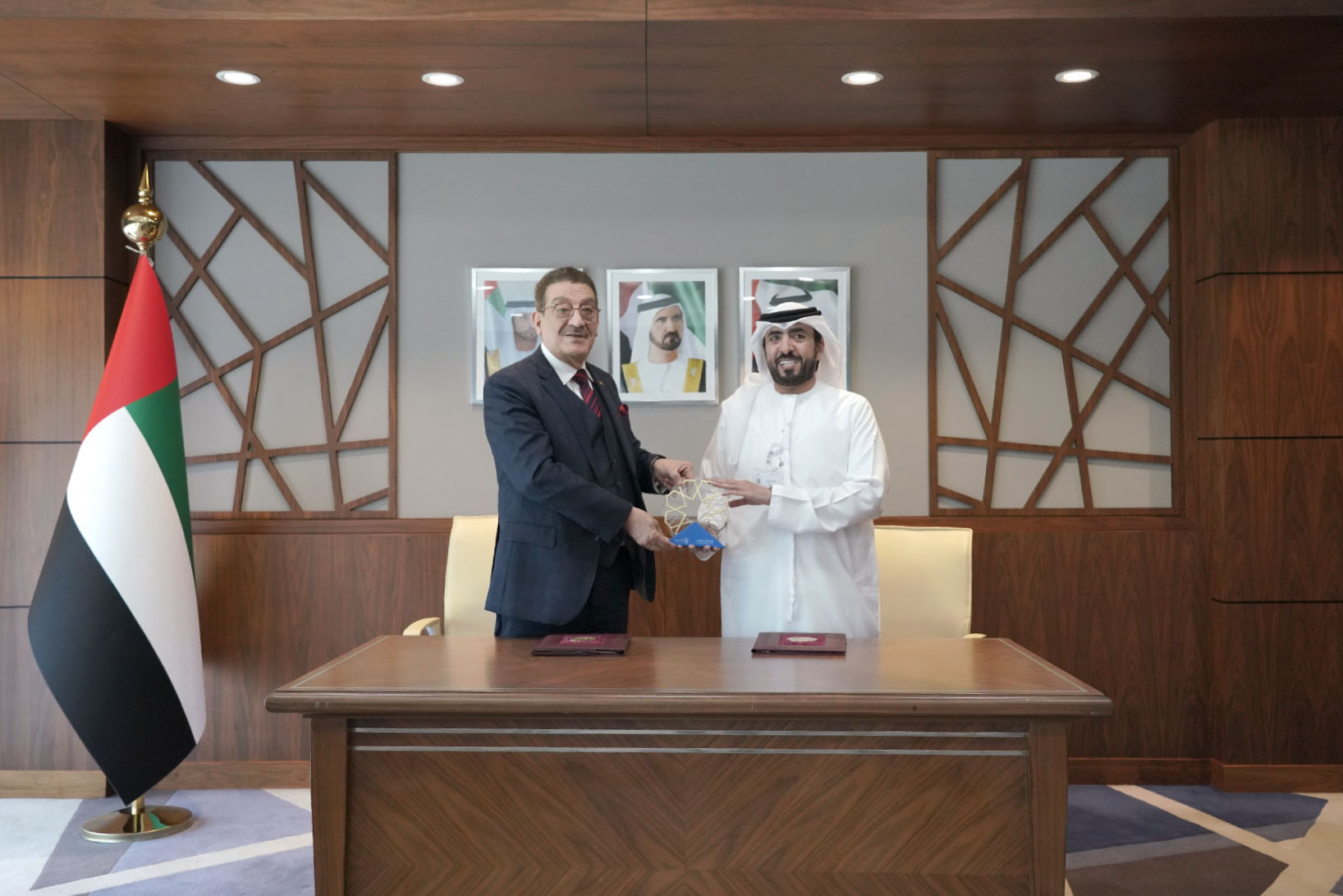 The MoU was signed by H.E. Ahmad Saeed bin Meshar Al Muhairi, SLC Secretary General, and Prof. Muthanna G. Abdul Razzaq, President of the AUE. This MoU covers various areas of cooperation, such as providing legal training in legislation preparation and drafting, conducting joint research and studies, exchanging visits, and holding roundtable discussions on critical issues and topics of mutual interest.