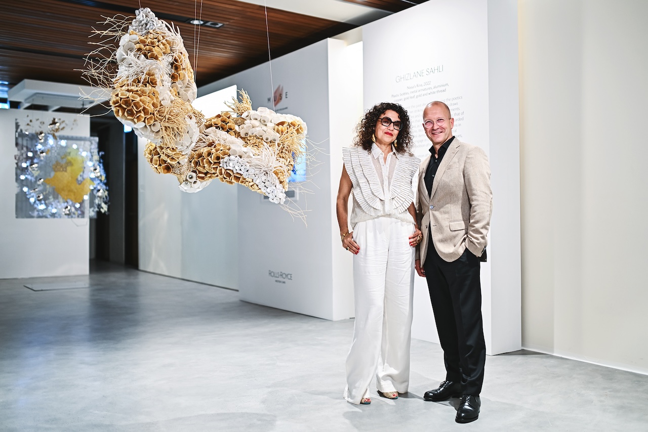Muse, the Rolls-Royce Arts Programme celebrates the Abu Dhabi debut of three magnificent artworks, created by the winners of the Spirit of Ecstasy Challenge. Unique pieces by Bi Rongrong, Ghizlane Sahli and Scarlett Yang are being exhibited at the Cultural Foundation, Abu Dhabi, from 17 to 19 March 2024. The private exhibition opening was attended by one of the three commissioned artists, Ghizlane Sahli, who personally presented her artwork to select patrons of the brand.