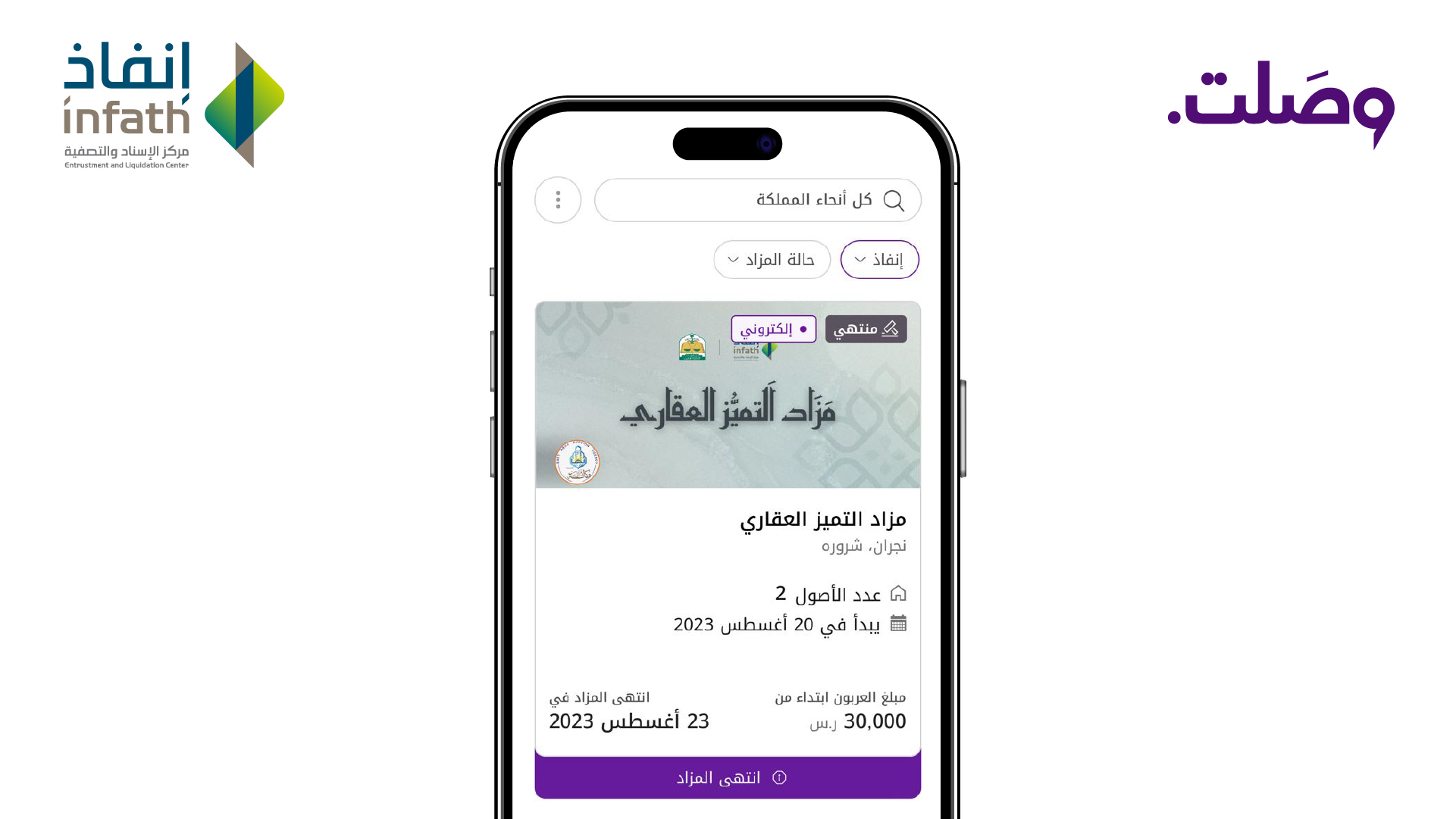 - Sale agents can list their auctions assigned by Infath on the platform to facilitate the process of selling fixed assets