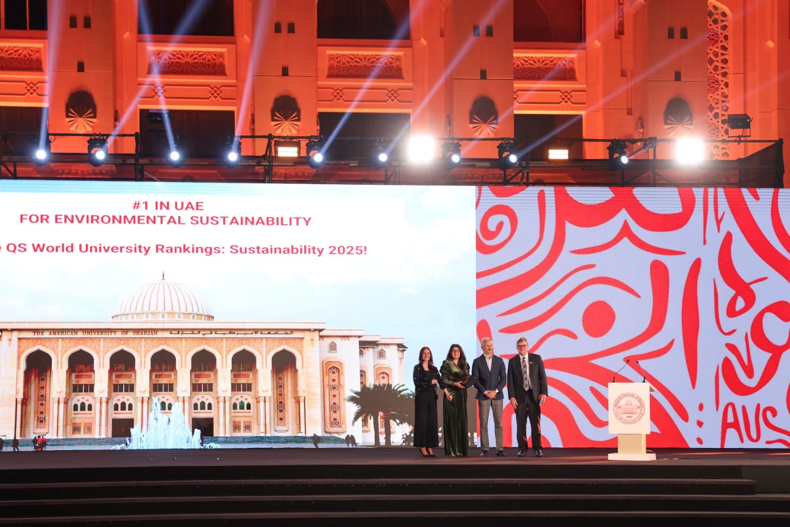 The highlight of the evening was the “Best Sustainable Idea of the Year” competition by ZEEKR and AW Rostamani Group, a bold initiative inviting AUS alumni to unleash their creativity and present innovative business models for a greener, more sustainable future. Amidst excitement and anticipation, the winner Sara Llalla, an alumna from the AUS College of Architecture, Art and Design, was awarded a ZEEKR X, the brand’s cutting-edge compact electric SUV renowned for its futuristic design and advanced technology.